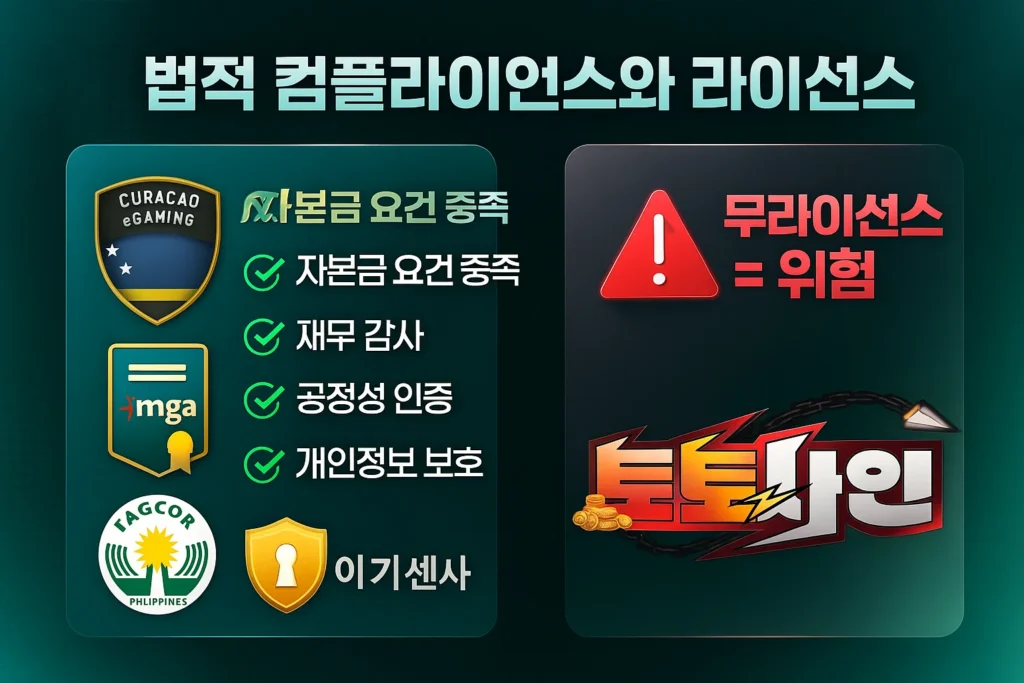 라이선스 보유 | 큐라소/몰타/PAGCOR | 일부 보유 | 없음 또는 위조 |